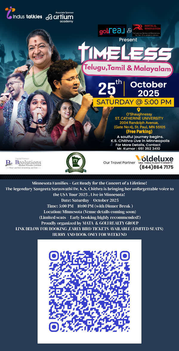The legendary Sangeeta Saraswathi Dr. K.S. Chithra is bringing her unforgettable voice to the USA Tour 2025 – Live in Minnesota! ??