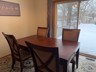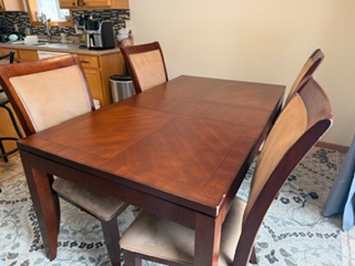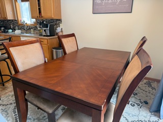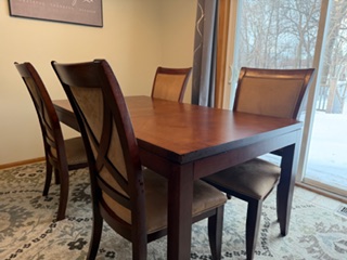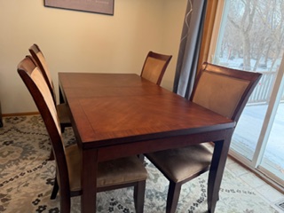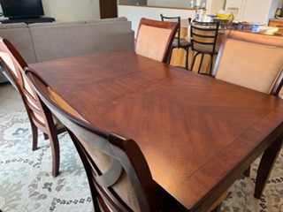 Beautiful dining table set with 6 matching chairs, perfect for family meals or entertaining guests. Solid and sturdy construction with a classic design that fits well in any dining space. Seats six comfortably. Condition: ? Very good condition ? Clean and well-maintained ? No major scratches or damage Details: Includes 1 dining table + 6 chairs 2 bar chair free with it Seats 6 people comfortably Smoke-free and pet-free home