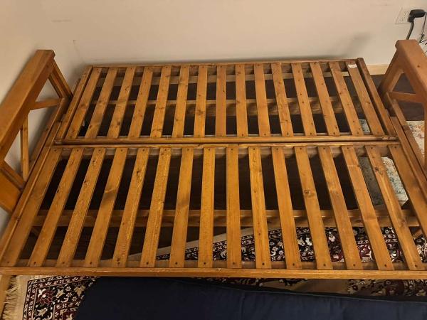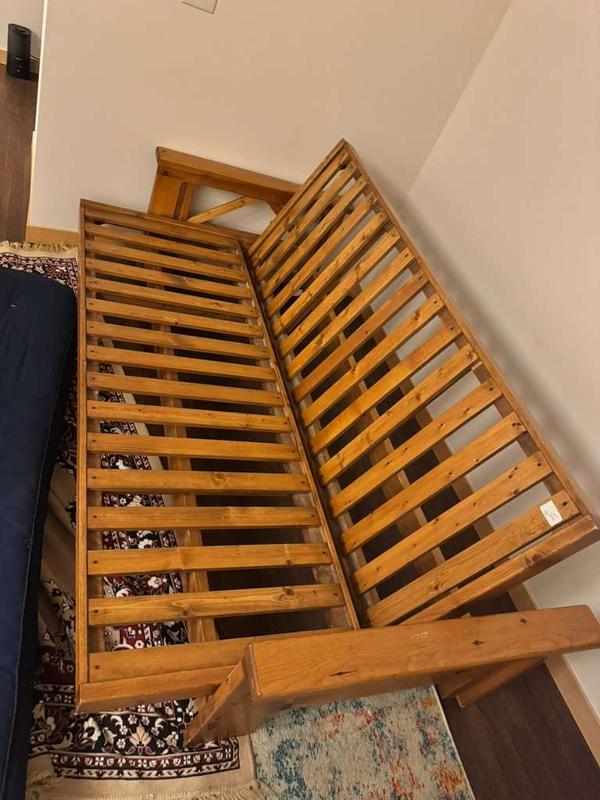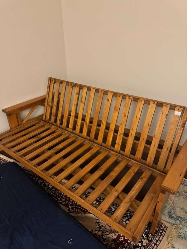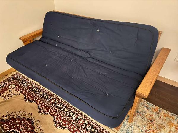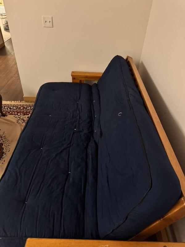 Convertible couch. Bought used, now giving away for free before I move out. Great padding and very comfortable. The couch converts into a twin size futon.