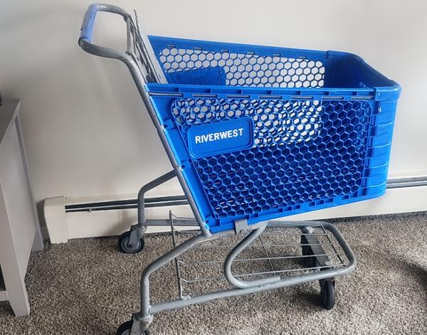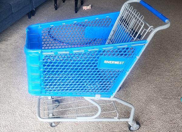Standard size blue color shopping cart for multipurpose usage. Immediate move out sale. Size : W X L X H - 22×38×41"