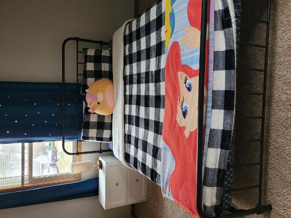 1. Guest bedroom sparingly used metal queen bedframe + 8 inch mattress - spot free / pet free environment. + White Side table - $80