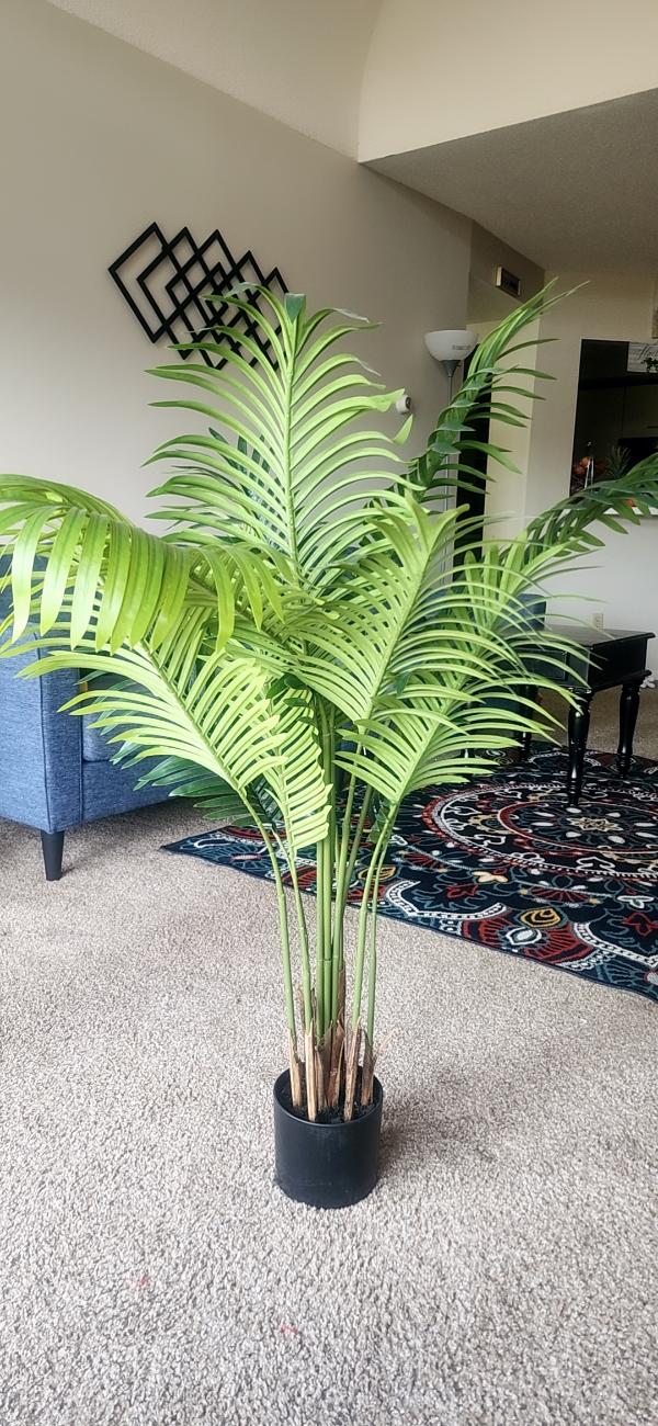 4ft fake palm tree for home/ office decor. Green color and pot included.